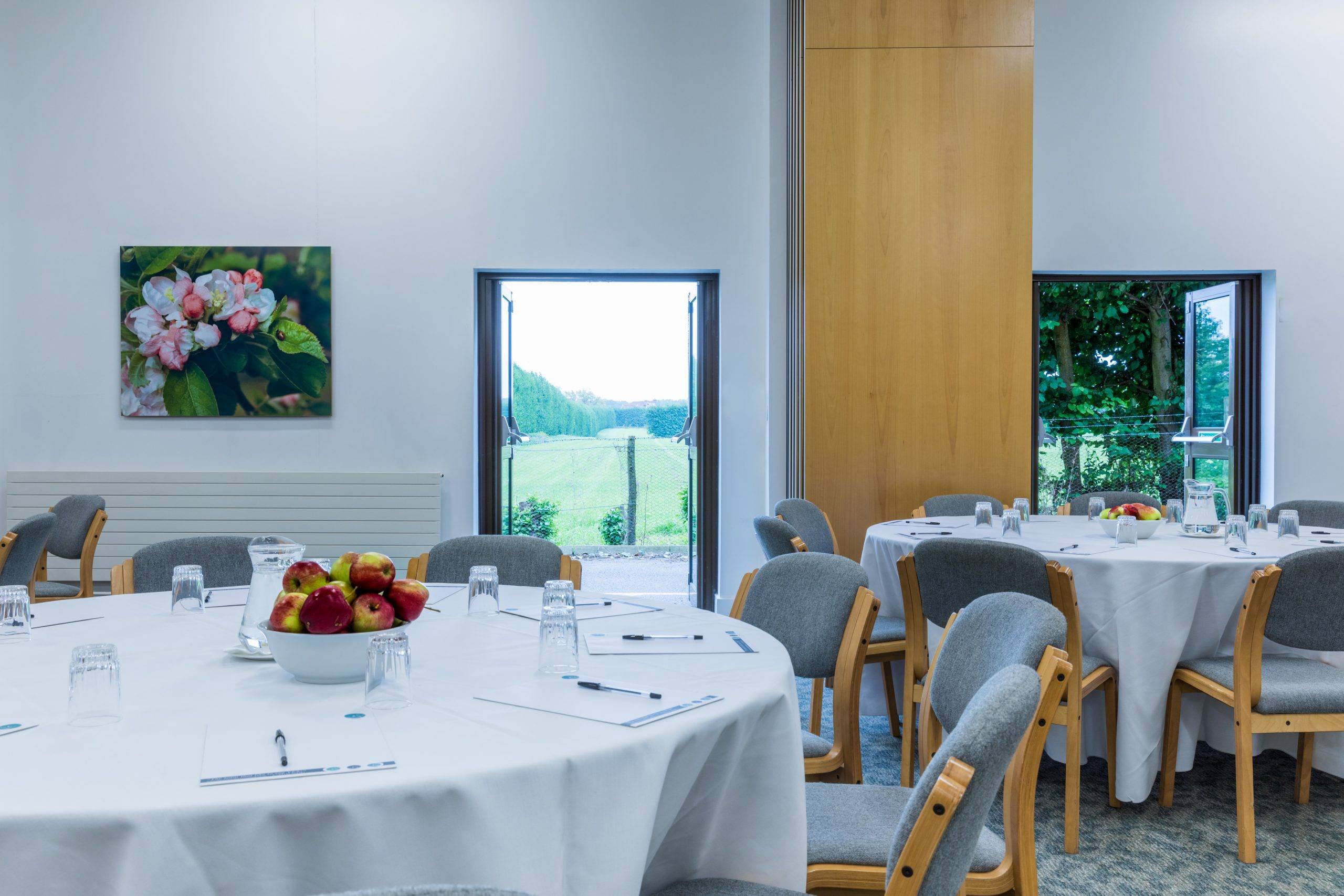 One of the smaller, more intimate meeting rooms, Pippin 1 and Pippin 2 offers views onto the landscaped gardens and can be partitioned and hired separately or together.